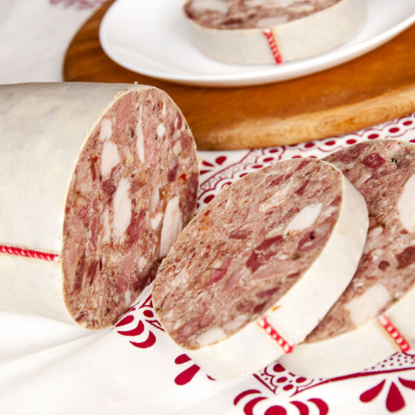 Сальтисон элитный с языком от Шацкого Мастера — это изысканный мясной деликатес, приготовленный по традиционным рецептам. Варёное изделие в текстильной оболочке сочетает в себе нежность отборного мяса и пикантность пряностей. Язык придаёт блюду тонкий вкус, а его структура отлично подойдёт как для праздничной нарезки, так и для сытного перекуса.